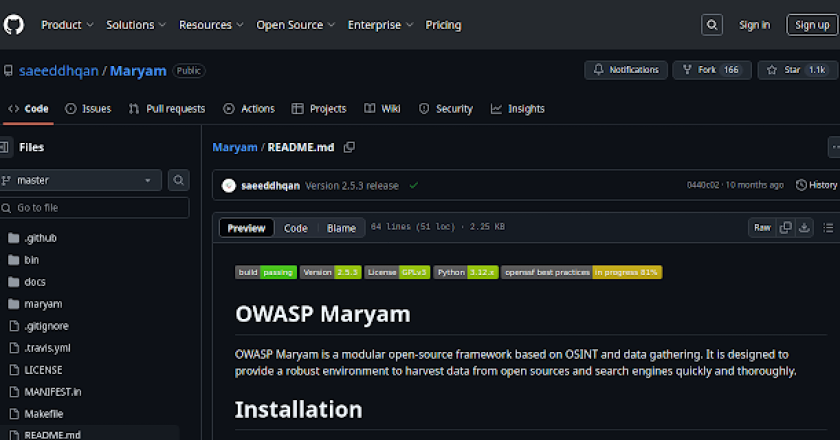 OWASP Maryam is a modular open-source framework based on OSINT and data gathering. It is designed to provide a robust …