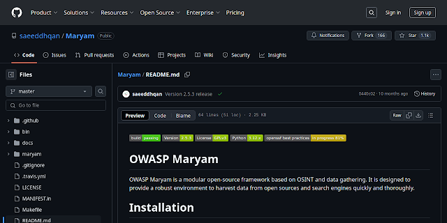 OWASP Maryam is a modular open-source framework based on OSINT and data gathering. It is designed to provide a robust environment to harvest data from open sources and search engines quickly and thoroughly.