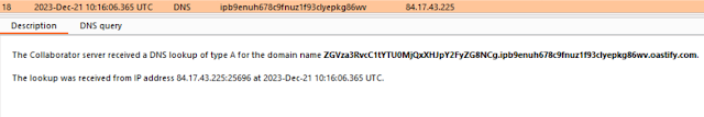 Logging to a file is optional but you must check the folder for that file exists in the system, the default value is “c:\temp\.sharpcoverttube.log”. DNS exfiltration is also optional and can be tested using Burp’s collaborator: