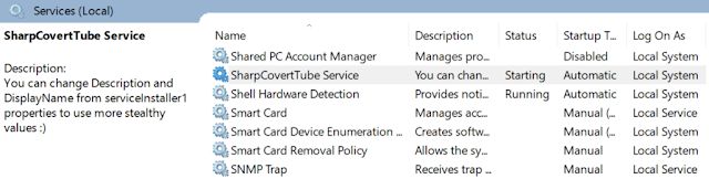 You can find the code to run it as a service in the SharpCovertTube_Service folder. It has the same functionalities except self-deletion, which would not make sense in this case.