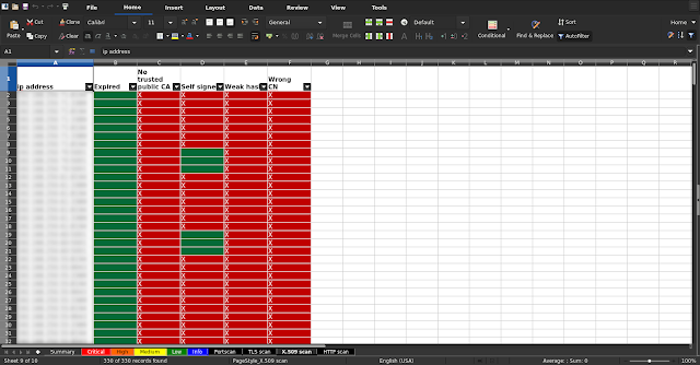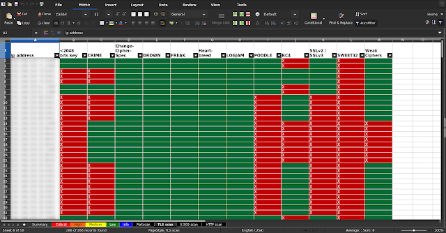 | ip address | port | BREACH | No HSTS | No PFS | No TLSv1.3 | RC4 | TLSv1.0 | TLSv1.1 | Wildcard |