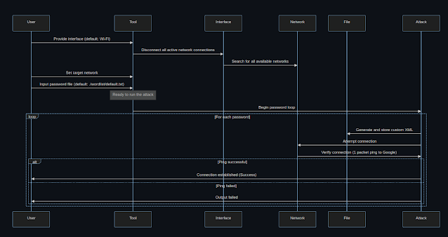 - The tool attempts to connect to the target network using the generated XML and the current password.